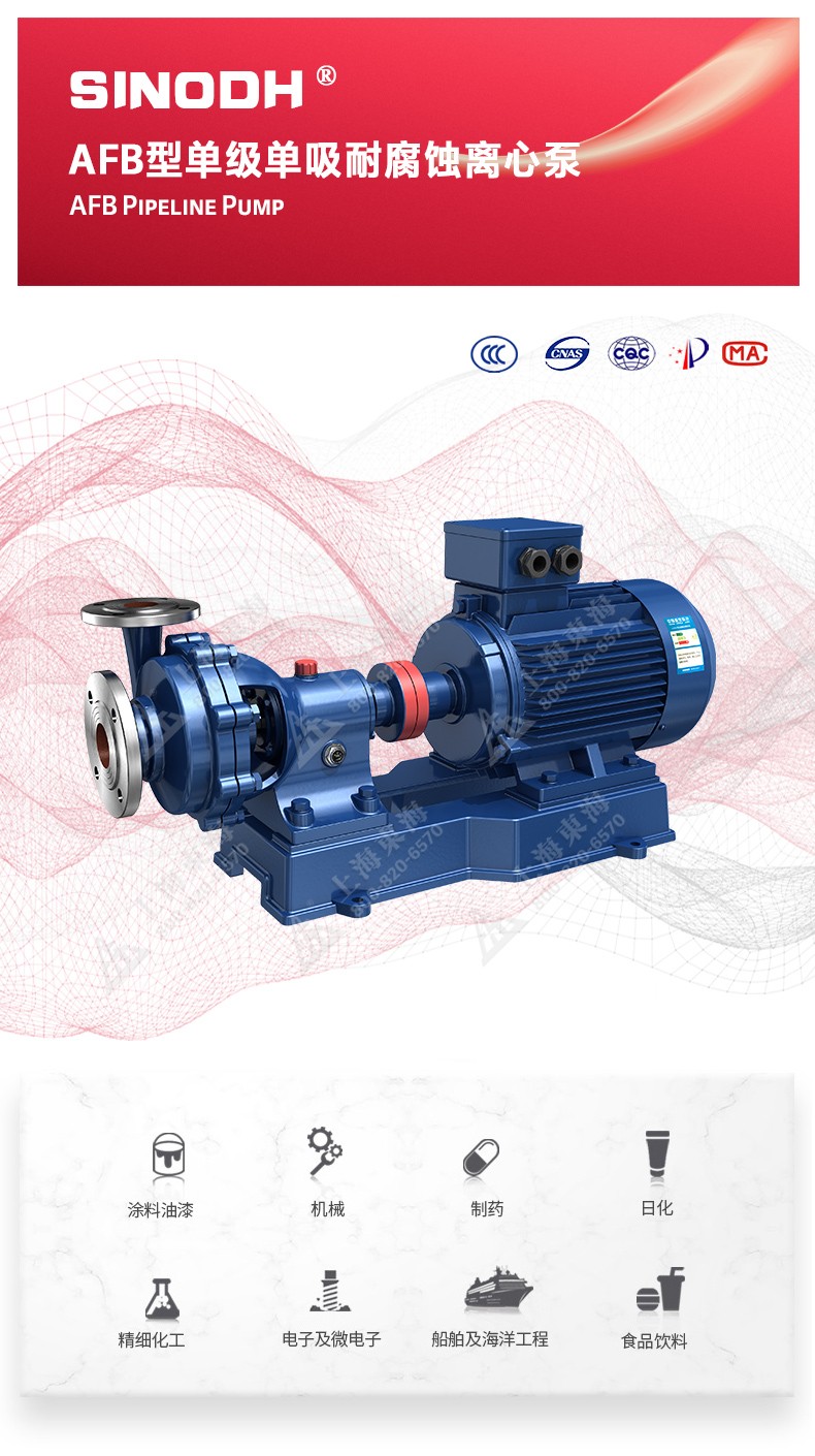 AFB型单级单吸悬臂式耐腐蚀离心泵,为中欧网页版自主研发生产。本系列产品适用于输送不含固体颗粒,有腐蚀性液体。被输送介质温度为-20℃~200℃,泵的进口压力不能大于0.2MPa,广泛用于石油、化工、冶金、合成纤维、制药、食品、酿造等工业部门,也可供工矿、企业及城市供水、排水之用。