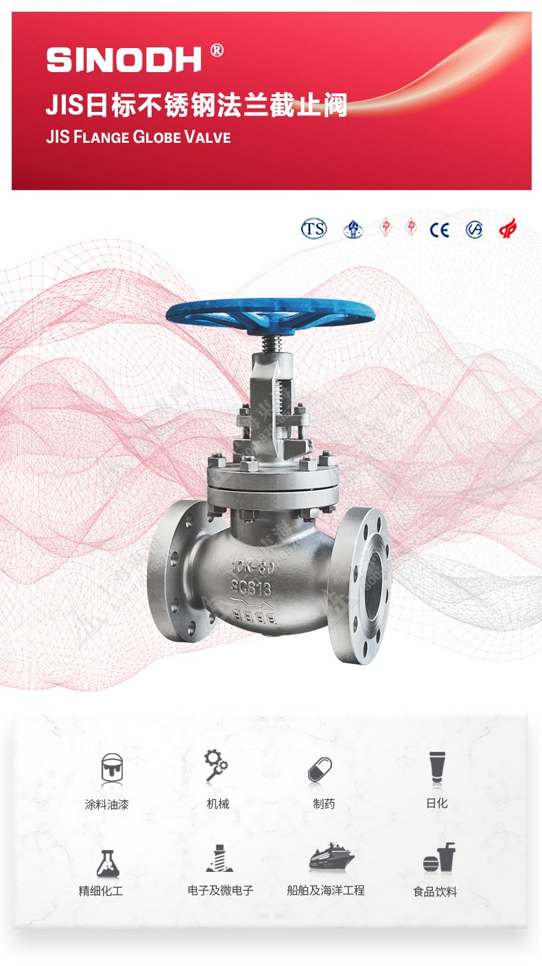 JIS日标不锈钢法兰截止阀,为中欧网页版自主研发生产。本产品设计制造标准符合J1SB2071标准,其启闭件是圆柱形的阀瓣,密封面呈平面或锥面,阀瓣沿流体的中心线作直线运动。国标截止阀只适用于全.开和全关,一般不用来调节流量,定做时允许作调节和节流。